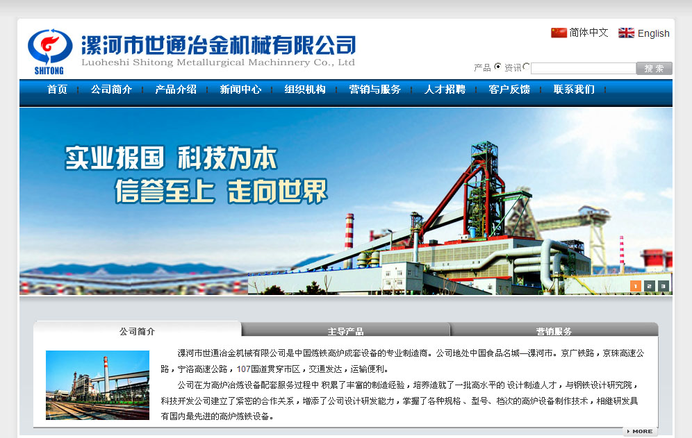 案例介紹:漯河市世通冶金機(jī)械有限公司是中國煉鐵高爐成套設(shè)備的專業(yè)制造商。公司地處中國食品名城—漯河市。京廣鐵路,京珠高速公路,寧洛高速公路,107國道貫穿市區(qū),交通發(fā)達(dá),運(yùn)輸便利。
