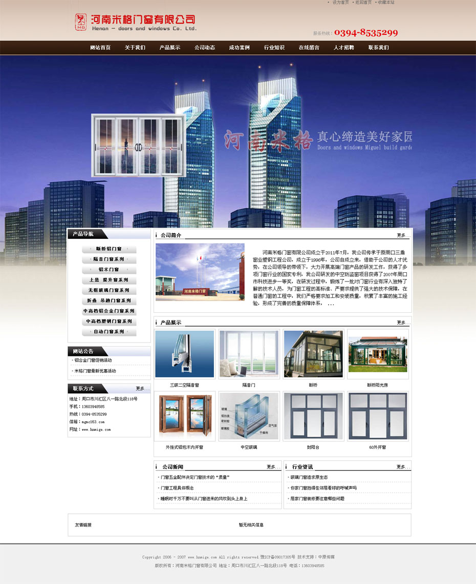 案例介紹:河南米格門窗有限公司成立于2011年7月,我公司傳承于原周口三盾窗業(yè)塑鋼工程公司,成立于1996年,公司自成立來,借助于公司的人才優(yōu)勢,在公司領(lǐng)導(dǎo)的帶領(lǐng)下,大力開展高端門窗產(chǎn)品的研發(fā)工作,獲得了多項門窗行業(yè)的國家專利,我公司研發(fā)的中空防盜窗項目獲得了2007年周口市科技進步一等獎,在研發(fā)過程中,鍛煉了一批對門窗行業(yè)有深入獨特了解的技術(shù)人員
